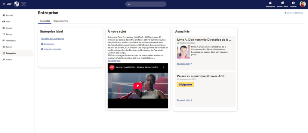 Il s’agit d’une solution digitale complète qui centralise de nombreux processus RH et managériaux : onboarding, entretiens, paie, attestations, formations, révisions salariales ou encore pilotage de la masse salariale.Pourquoi avoir choisi ADP ?