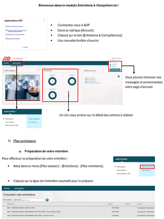 Guide d’accès et d’utilisation ADP module entretiens – COLLABORATEUR